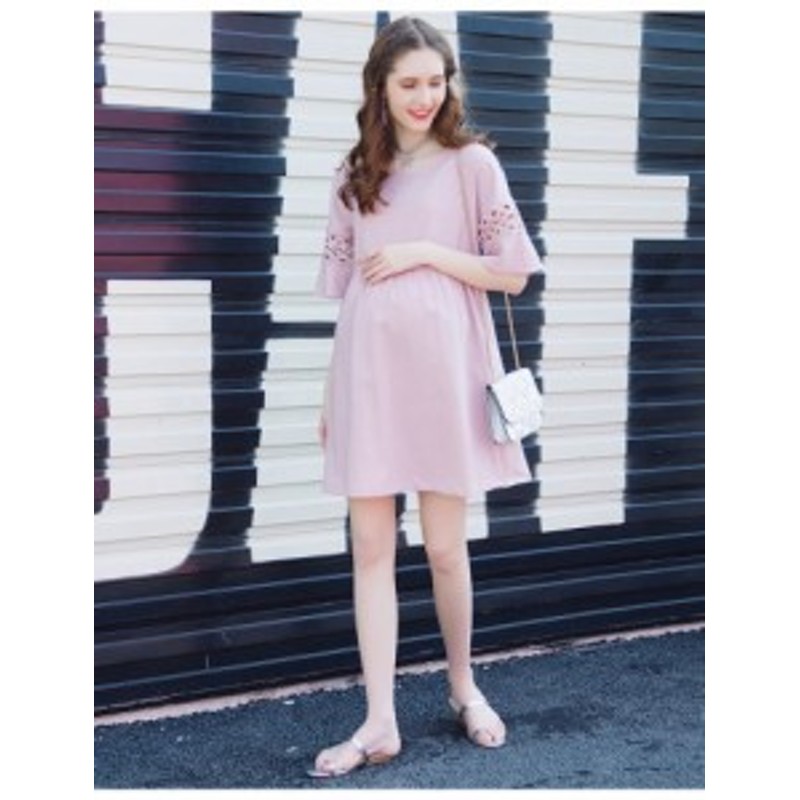 マタニティ ワンピース マタニティウエア ワンピース ひざ丈 ミニ 五分袖 シースルー 胸下切り替え レース ふんわり ゆったり 体型カバー 通販 Lineポイント最大1 0 Get Lineショッピング
